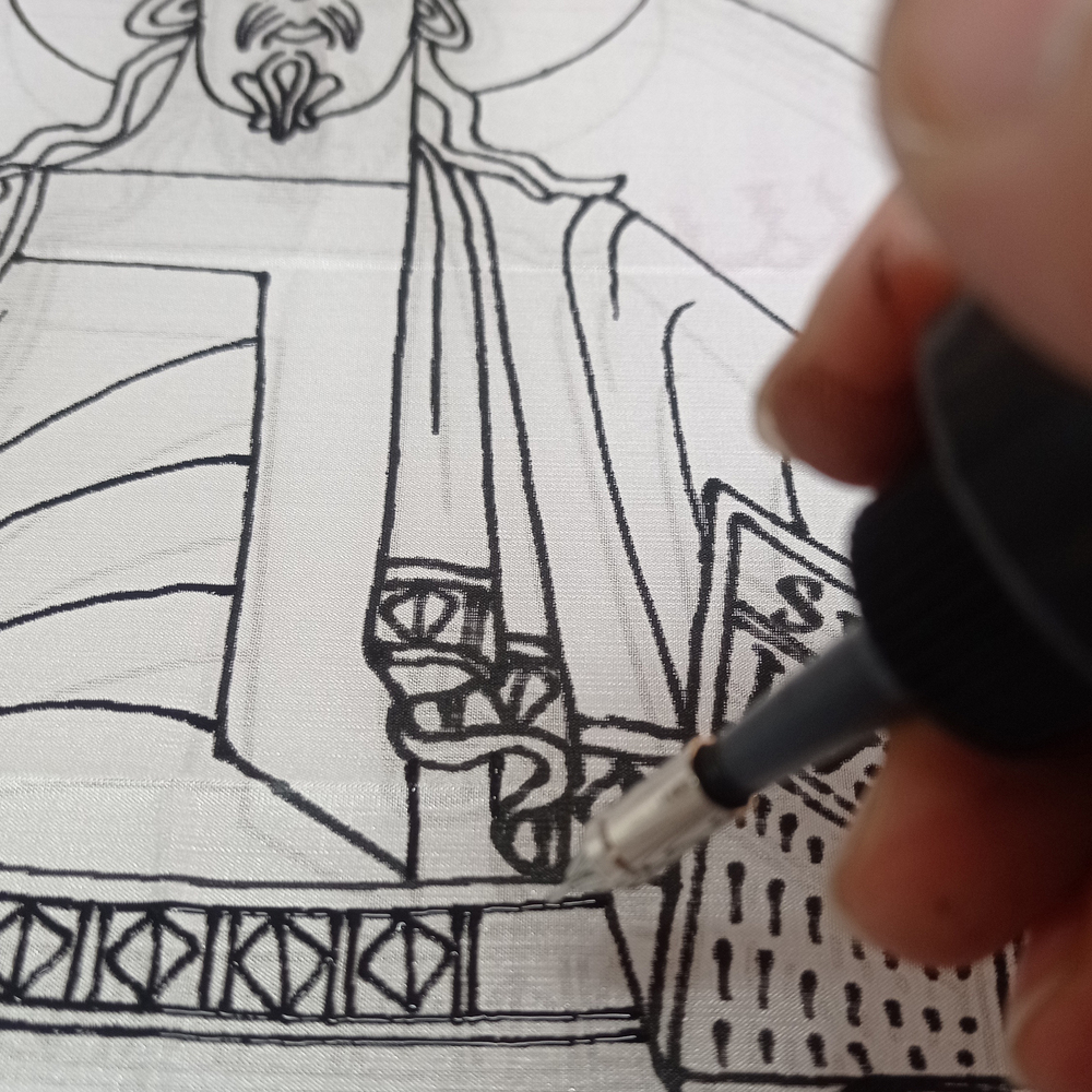 Una vegada finalitzat el disseny es procedeix a la realització de la plantilla a mida real i sobre paper. L'objectiu és transmetre a la seda la frescor i els detalls del disseny d'una manera segura, ja que és una tècnica que no admet errors.